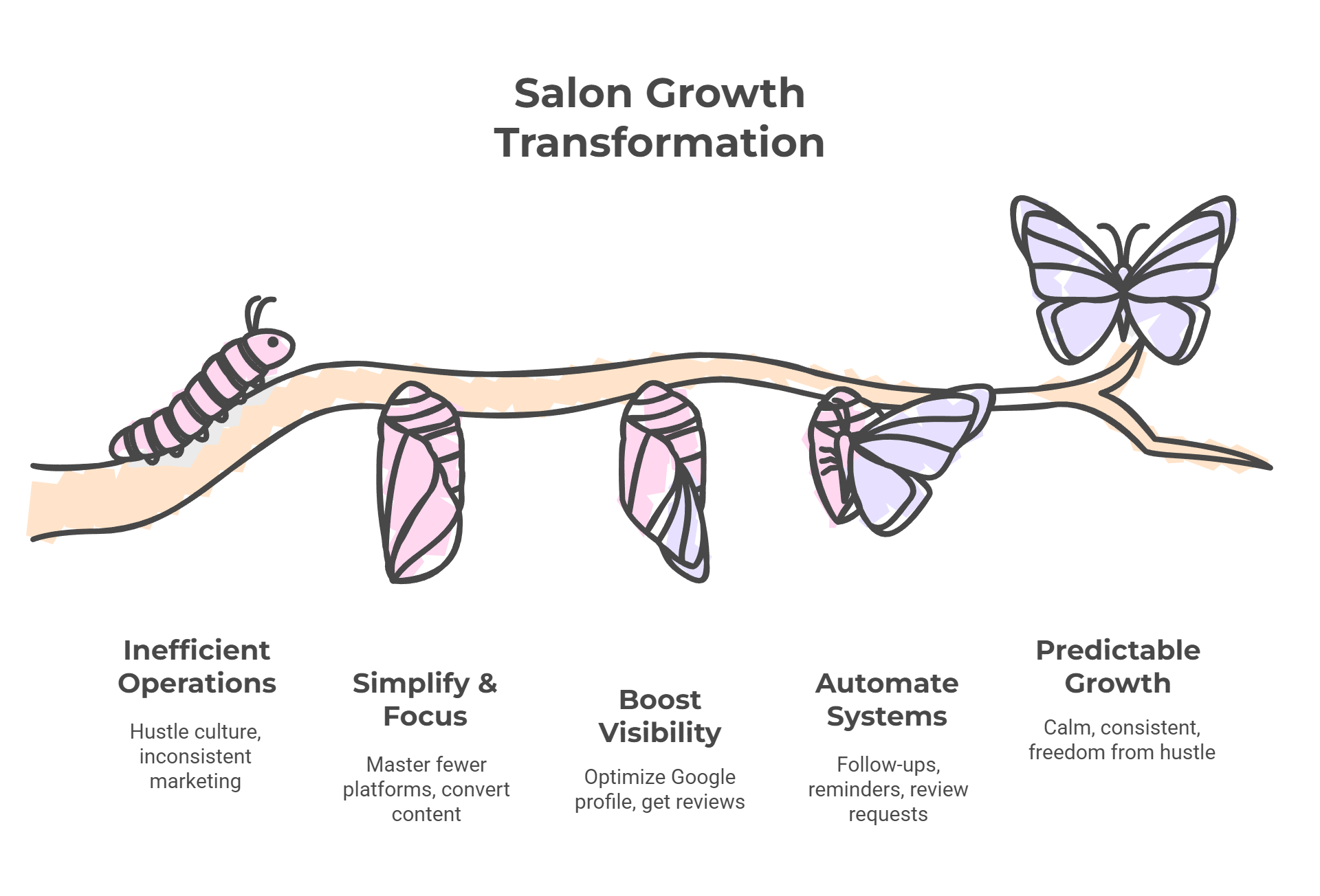 When I talk to salon owners who are thriving, they’re not working 10-hour days in panic mode. They’ve built rhythm, marketing that runs quietly in the background, bringing in clients even while they’re cutting hair or running the front desk.